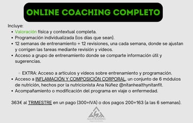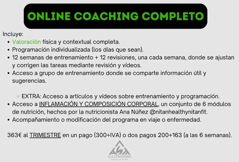 12 semanas de entrenamiento + 12 revisiones, una cada semana, donde se ajustan y corrigen las tareas mediante revisión y vídeos.
